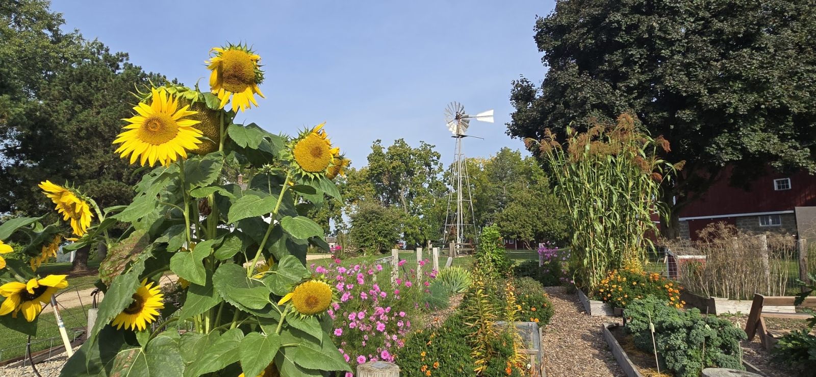Heirloom GardenSchumacher Farm Park's Heirloom garden is planted with varieties typical of those planted in a farm garden of the 1920s and 1930s. An heirloom plant is a cultivar that was commonly grown during earlier periods in human history, from seeds that have been passed down through generations, but which is not used in modern large-scale agriculture. Heirloom varieties fell out of use as hybrid, more "modern" varieties were introduced. They are usually hardy, flavorful and disease-resistant. Our seeds comeprimarily from the Seed Savers Exchange® and date from 1840 to 1940. The garden also features a strawberry patch, grape vines, rhubarb, asparagus, raspberry and currant bushes. No herbicides or pesticides are used.